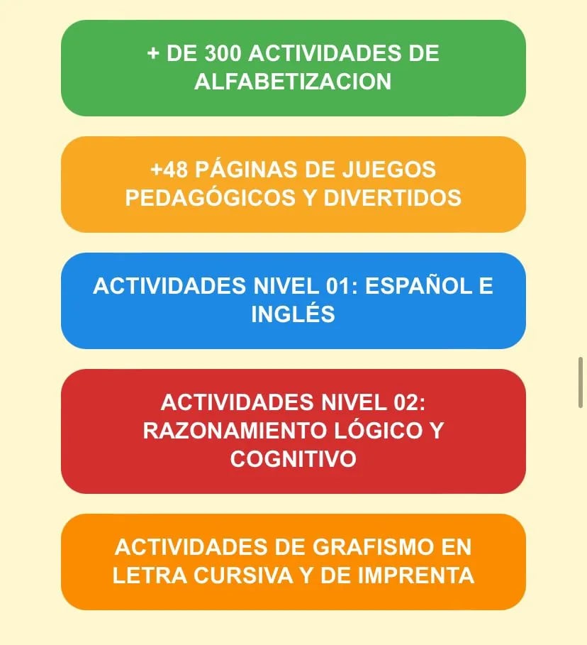 Con el Kit Tareas Creativas, tu hijo desarrolla el cerebro para aprender a leer de forma ligera, a su ritmo, ¡y con resultados visibles en pocos días!