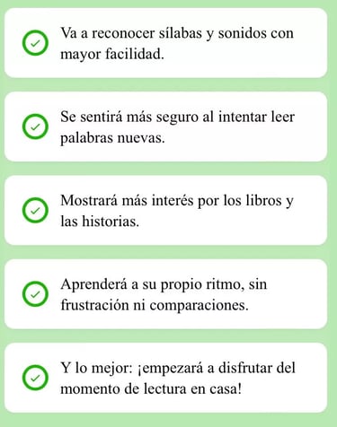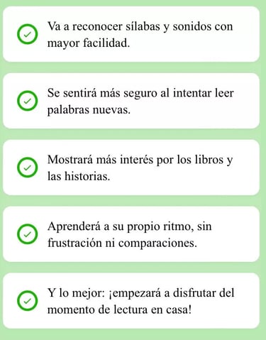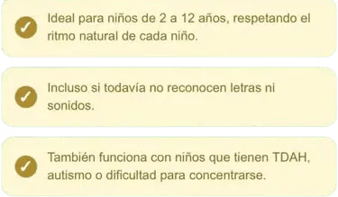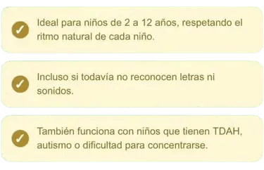 Ideal para niños que están dando sus primeros pasos en la lectura, el método ofrece un enfoque estructurado e intuitivo, ayudándoles a desarrollar una base sólida y segura.